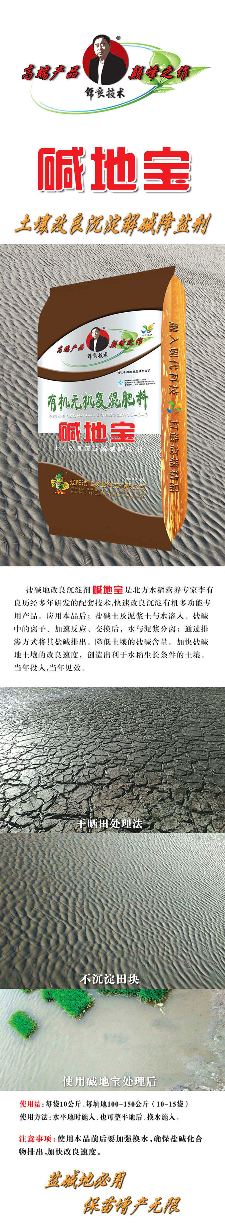鹽堿地改良沉淀劑是北方水稻營(yíng)養(yǎng)專家李有良?xì)v經(jīng)多年研發(fā)的配套技術(shù),快速改良沉淀有機(jī)多功能專用產(chǎn)品。應(yīng)用本品后;鹽堿土及泥漿土與水溶入、鹽堿中的離子、加速反應(yīng)、交換后,水與泥漿分離;通過(guò)排滲方式將其鹽堿排出。降低土壤的鹽堿含量。加快鹽堿地土壤的改良速度,創(chuàng)造出利于水稻生長(zhǎng)條件的土壤。當(dāng)年投入,當(dāng)年見(jiàn)效。